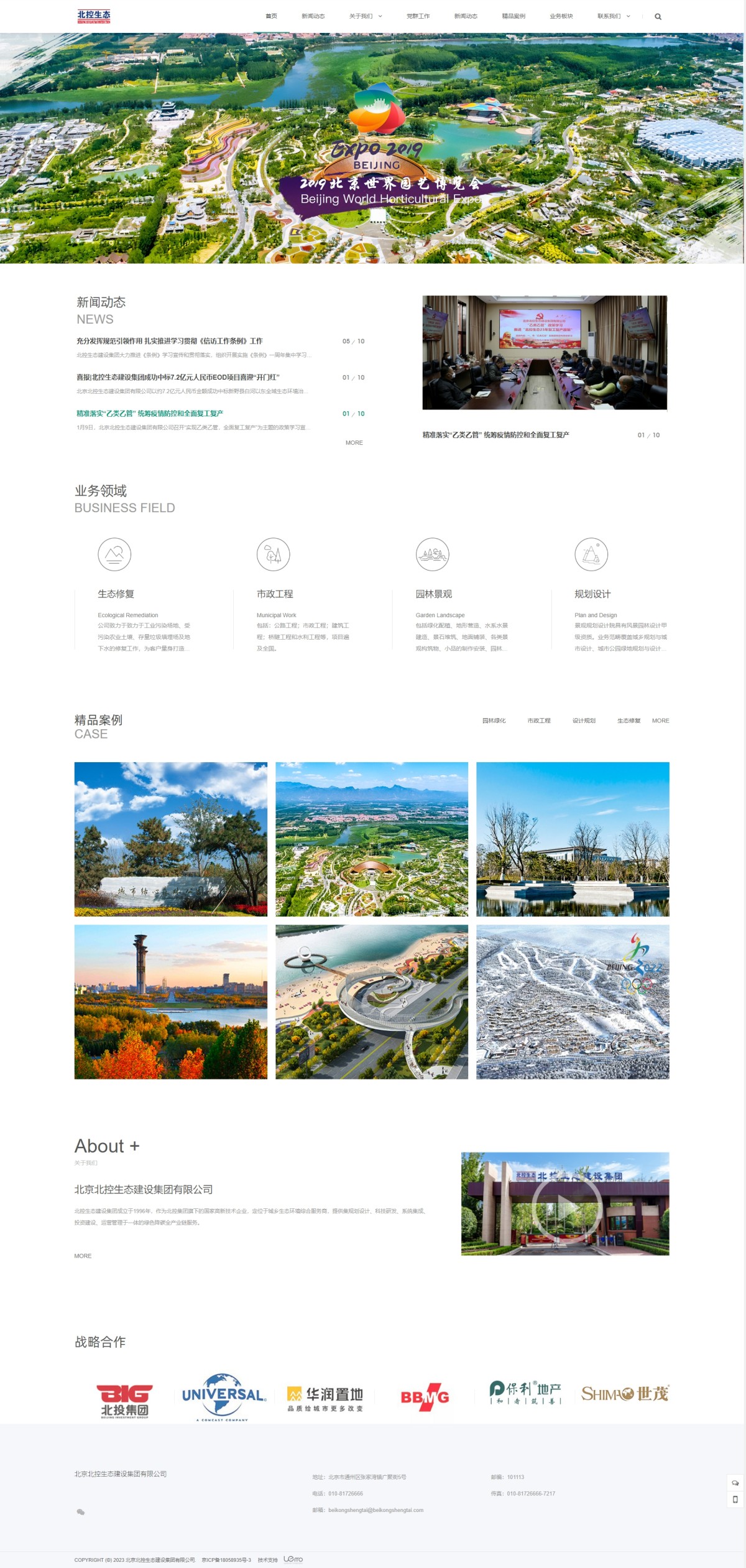 公司创立以来,持续开展技术创新,不断加强专业人才队伍建设,坚持用高质量项目回馈社会;凭借成熟的四大业务板块的发展,奠定了雄厚的基础,项目已遍及全国各省、自治区、直辖市。北控生态将继续保持初心和情怀,秉承大国工匠精神,依托北控集团的综合实力进一步向高精尖专业化发展,推进更多项目合作落地,用高质量的作品助力生态文明建设,为美丽中国添彩。